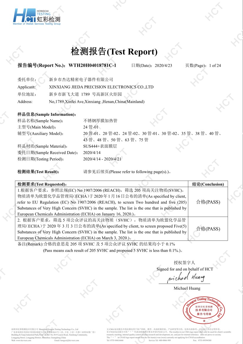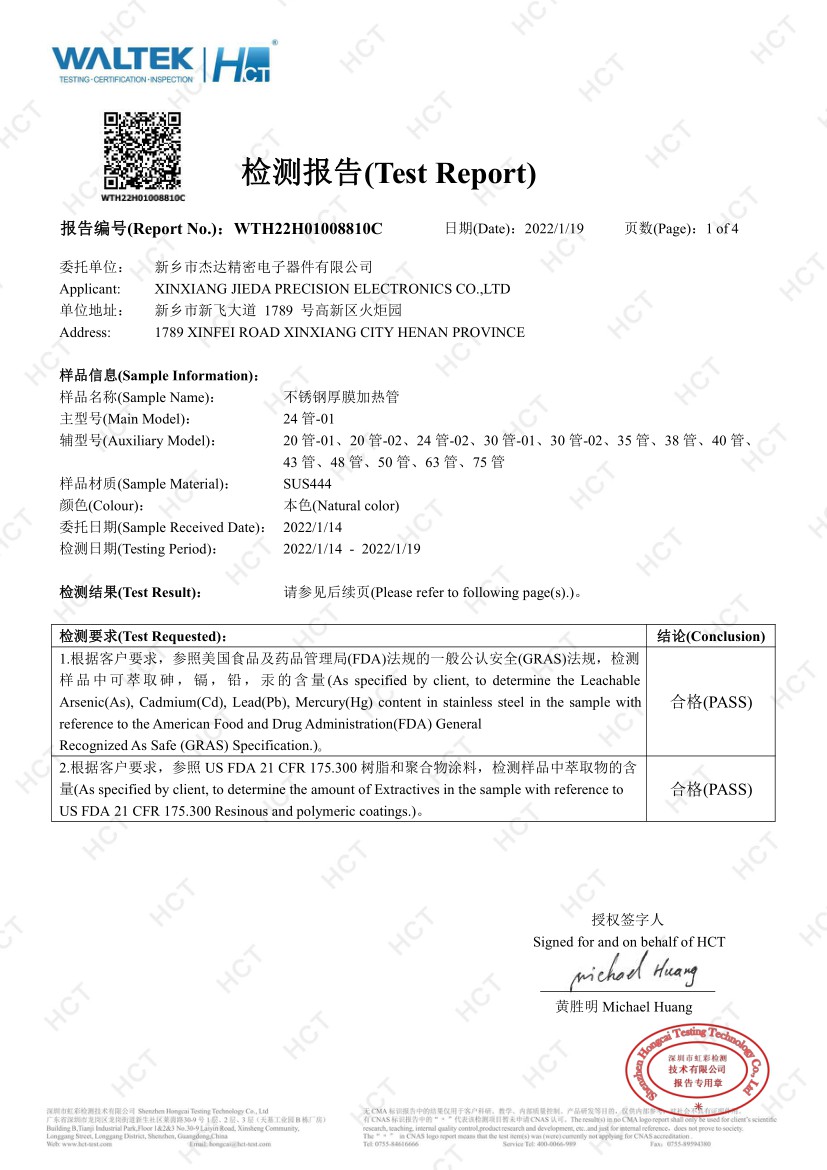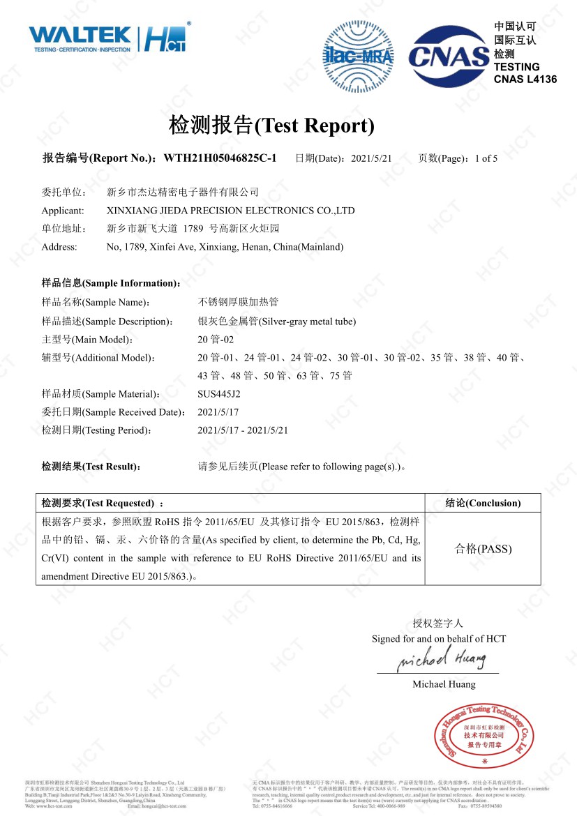 2012年8月公司成立,與中科院合作,確立厚膜加熱領(lǐng)域發(fā)展方向,確定厚膜制高點(diǎn)-不銹鋼厚膜加熱管的產(chǎn)品策略。